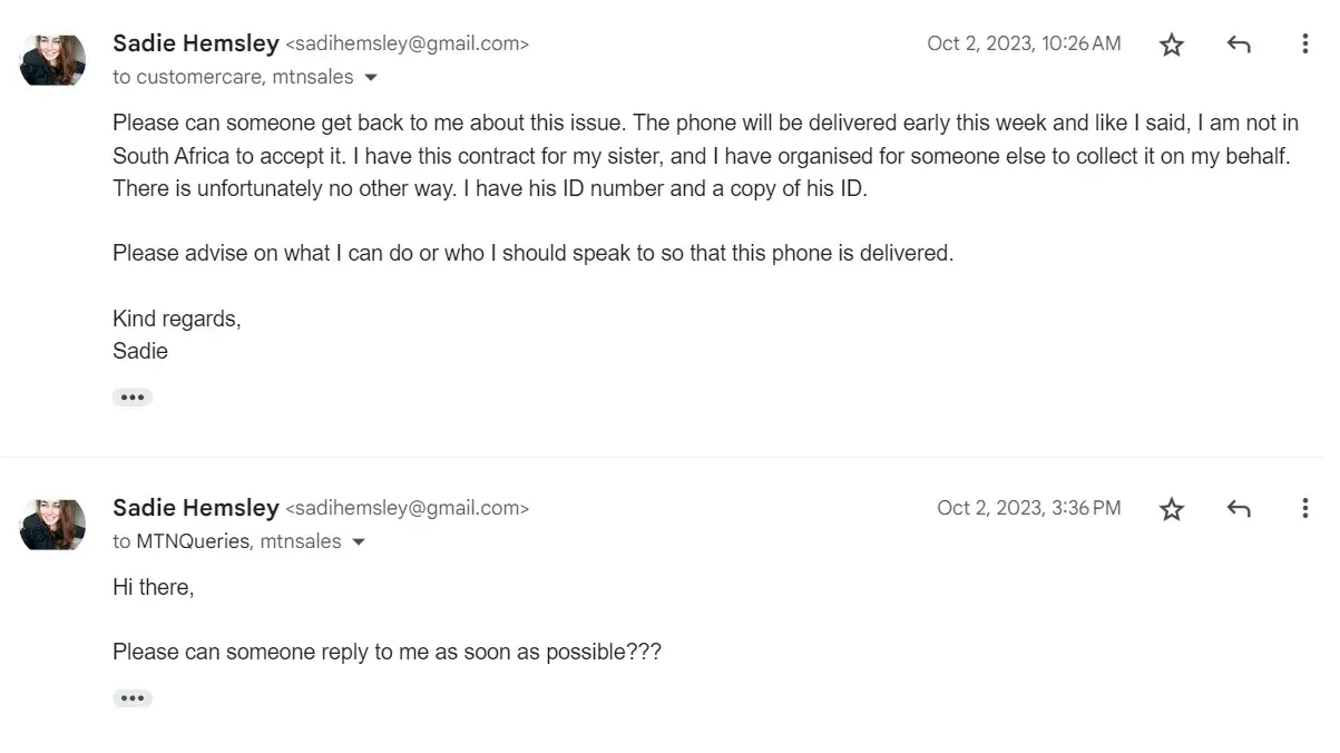 I need urgent assistance in this regard, as MTN is not responding to my e-mails.