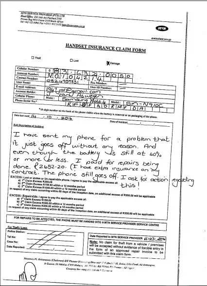 In july I went to mtn to report my samsung note 4. It just went off even though it still had enough battery life. It also was stuck now on the locked screen. I couldn't get access to my phone. They sent it away to be repaired.