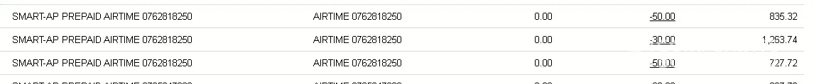 I have a serious complaint… following is a screenshot from my bank statement indicating that I have spent R130.00 on airtime - purchased:- august:- 4th [R30.00] 10th [R50.00] & 30th R50.00].