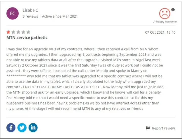 They send this above email in response when I emailed complaints at MTN no reply no answer