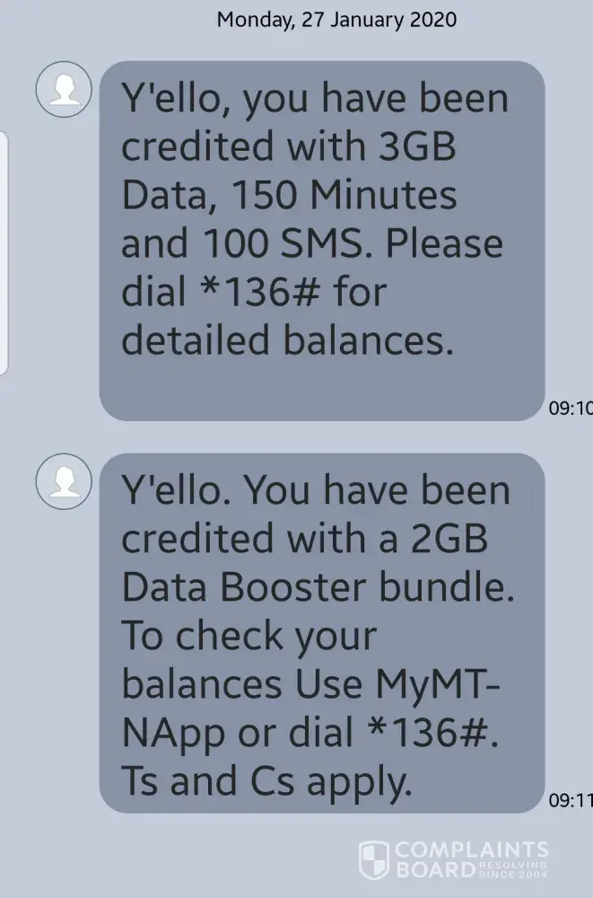 Since April last year, MTN have not loaded my data correctly, as per my contract. I am to receive 1GB + 2GB as per my contract and an additional 2GB as an add on bundle. I have attached the SMS I receive on thec27th of every month, which shows this.