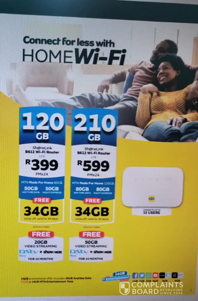 Unfortunately this is not what I agreed with MTN. I feel defrauded that now I have a wrong contract which I would have never applied for the only reason I applied was because of the promotion and the data I will not pay R300 for 24 months for something we did not agree upon. Please investigate and fix it or cancel the contract because this is fraud . You cannot advertise something while you know very well that that's not what you are offering.