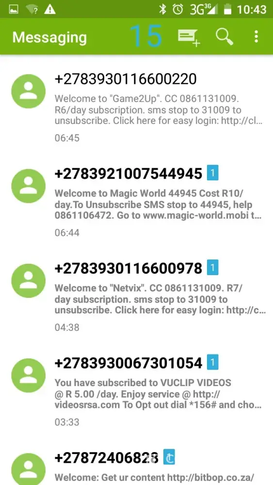 MTN is subscribing customer unaware as I have received SMS's at night Saturday 03.03.2018 around 23:17 pm. I was sleeping at that time, the sms was saying (you have been registered with MTN Gamer+) that will cost me R3/day.