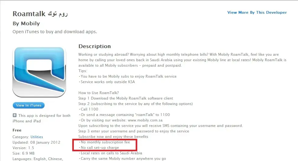 in iTunes store it is clearly mentioned this service is free no charges but I just called customer service to inquire what value added services I am signed up under my post paid phone for and I was shocked to hear I am paying 50 SAR per month from last many months without knowing for mobily roamtalk..