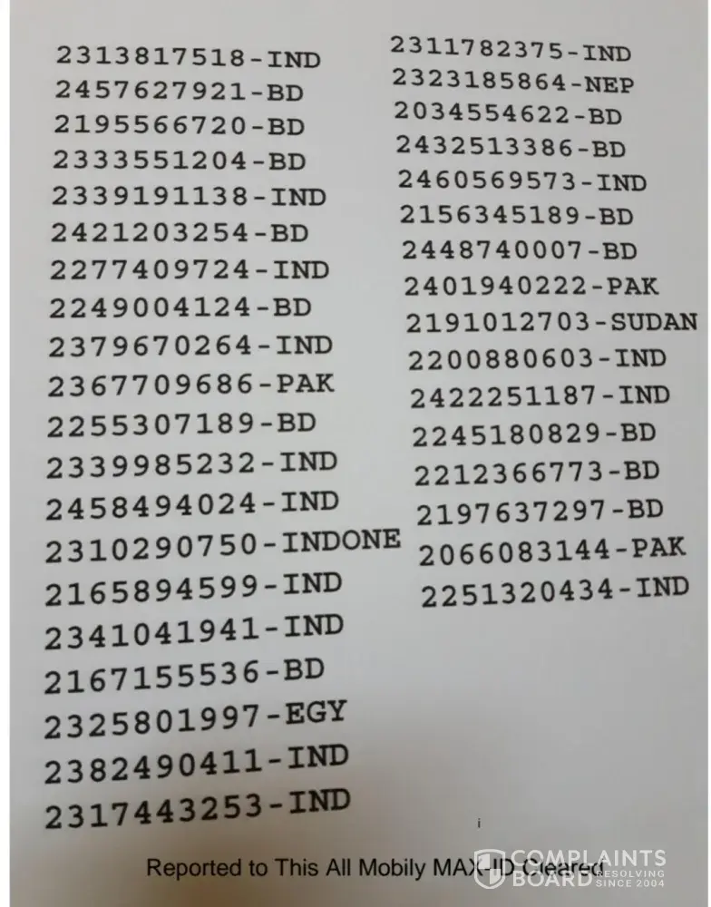 I want all mobily coustomers maximum ID emergency clean.. thnk you. below this all coustomers ID sheet