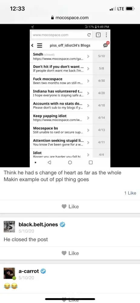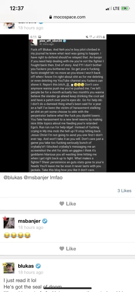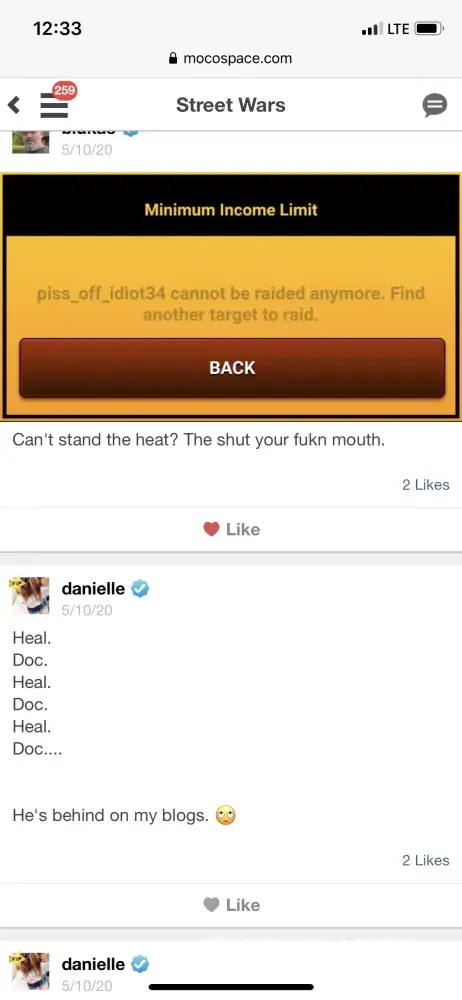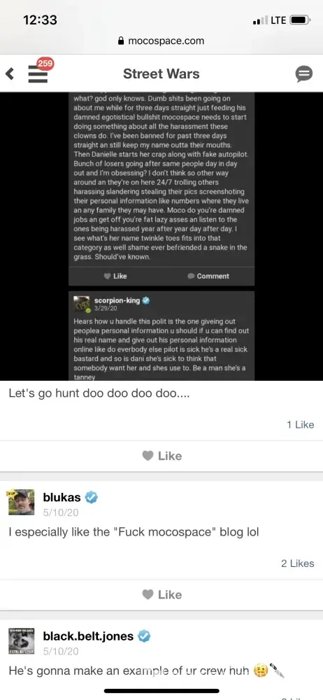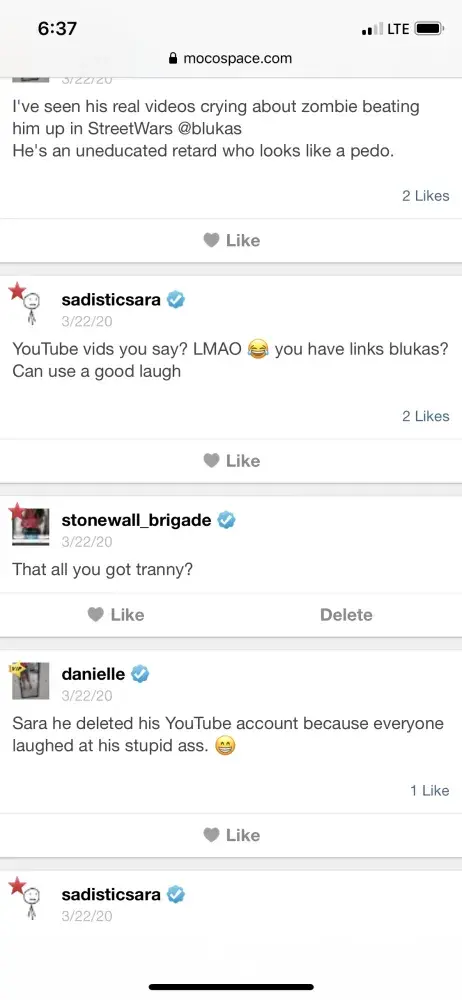 I have been on this junk site since 2010 and from the garbage I've seen comes from the forums. They're sheer trash the people are rude and they'll troll new people harass them then claim being harassed when the person they harass retaliate. My harassment started a year an a half ago an since has gotten worse blocked the ppl stopped talking them only gets worse. The admins block people ignore an or delete. People are known to false report others like Danielle Blukas tammy zooker an a lot more mocospace picks its favorites an even allow these rats to stalk others social media an share it in forums this site is not just trash but dangerous an mocospace needs to be shut down for good. I've had fakes made of me I've been threatened with death threats they're stupid games allow harassment to this is a site that encourages trouble makers especially ones that have criminal records they also encouraging bullying an cyber bullying and they never fix the site.