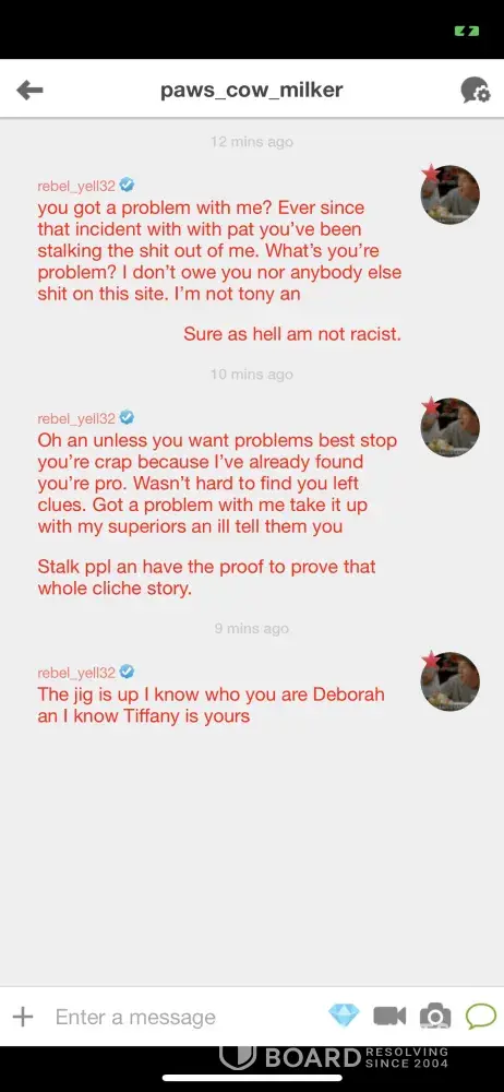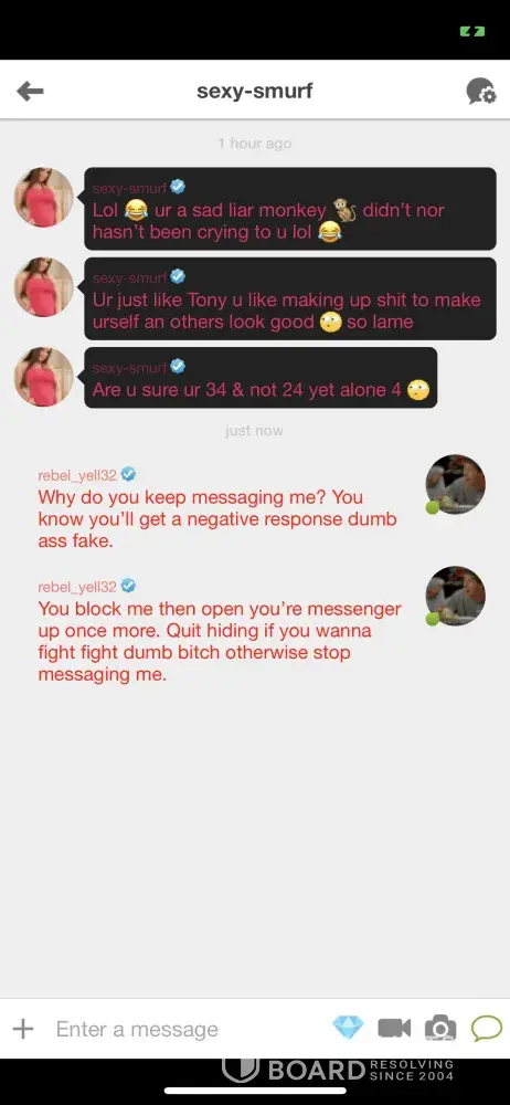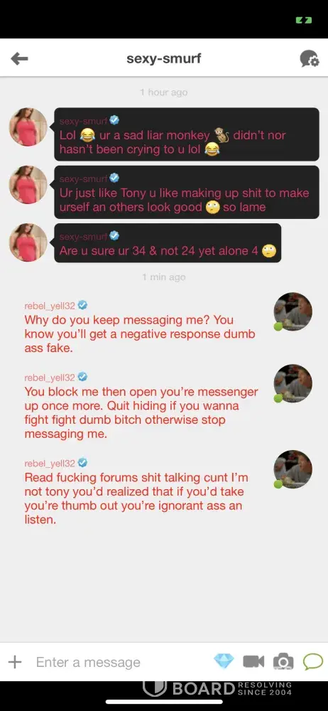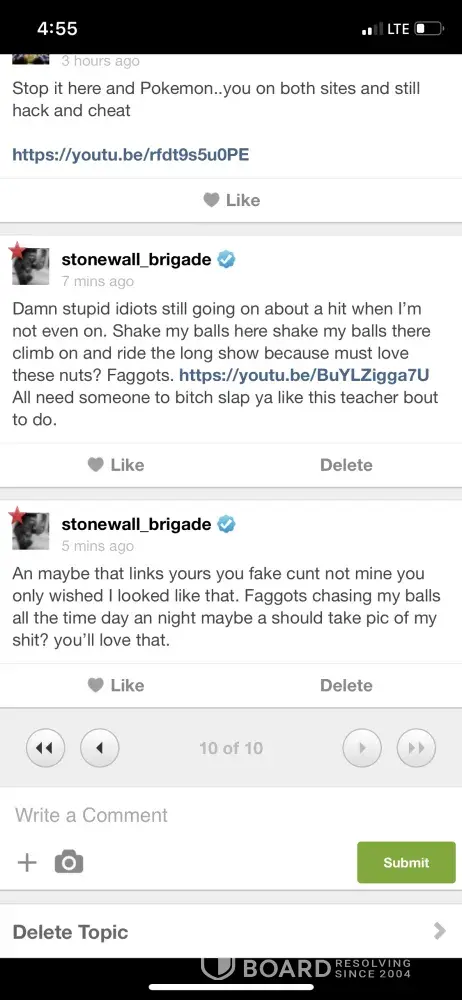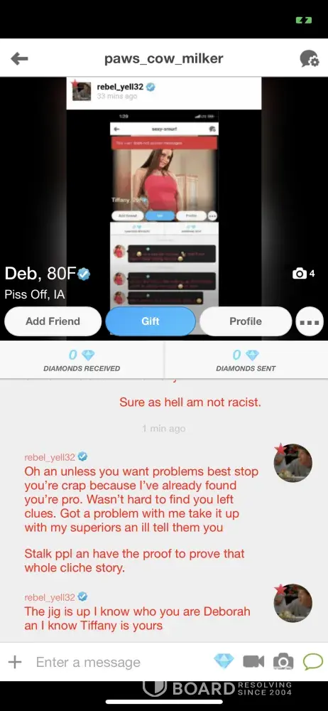 Desired outcome: I would like to see the offender’s PERMANENTLY removed from the site not just for a few minutes until they make a new profile