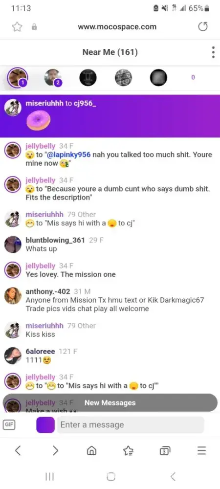 If you dont know how to chat then dont come here, if you dont know how to get to know people before you hand out your kik, number, etc out then you gone get $#*!ed with, you dont wanna look for anything serious but if you find it then whatever, most people hate on mocospace because they are not chatters who know how to chat or use this site, have some fun and talk $#*! is about all you can do on the web, other then that get the $#*! off the internet and go do something with yourself, just saying:.