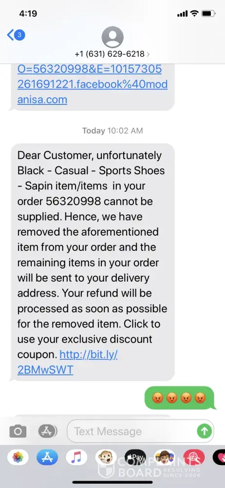 I ordered 4 items from Modanisa on 31/01/2020 and the order was confirmed, I got charged for it and everything was fine that's when I received a text from them on 06/02/2020 telling me that they took out one of my items and they just decided not to ship it to me and it's not available I don't know how! Although the shoe is still available on the site. And i've already been charged for it 7 days ago and the whole order was confirmed. Are you lying to the customers or what idk? They didn't even ask me if i'm okay to remove this item and get refunded for it or not, or to wait for one more week or anything. Instead, they just decided on my behalf. And when I called the cs it was the worst he didn't give me options he just told me sorry we gave u coupons and a shawl as a gift. Thanks but what about the shoes. He said we're gonna refund u asap. Who told u to this? Did u even ask for my permission for any of these situations here?. And then I told him, so now I have to re - order it. He told me no u better not. U can just choose another style and i'm noticing that it is still available till this moment.
