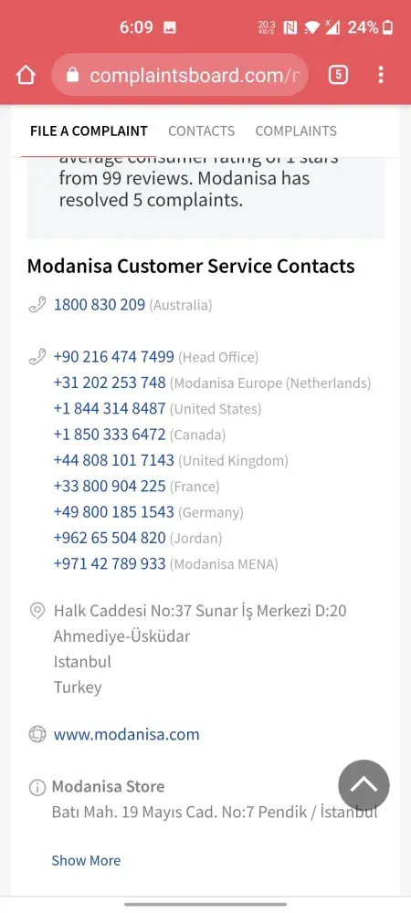 I have made more than 30 calls to Modanisa customer services on 02031399055 but in vain and don't know what else to do.