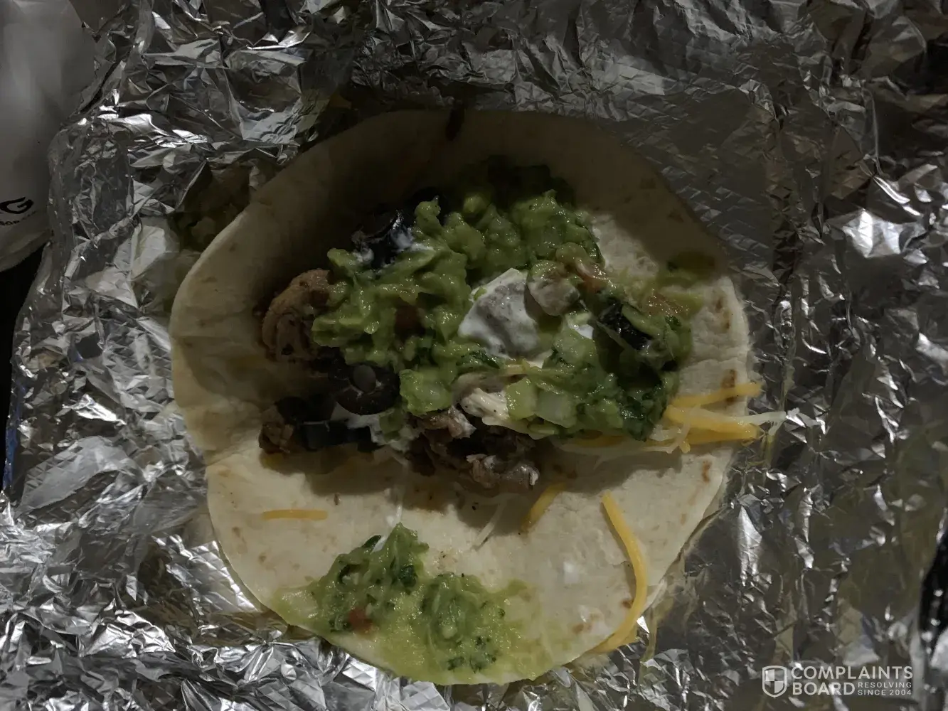 I have received burnt chicken from other locations. I am done with Moes. CHIPOTLE Only from now on . I tried calling the location after receiving my order over 10
