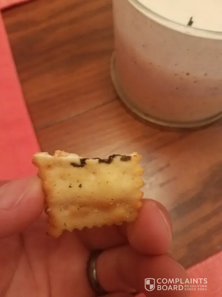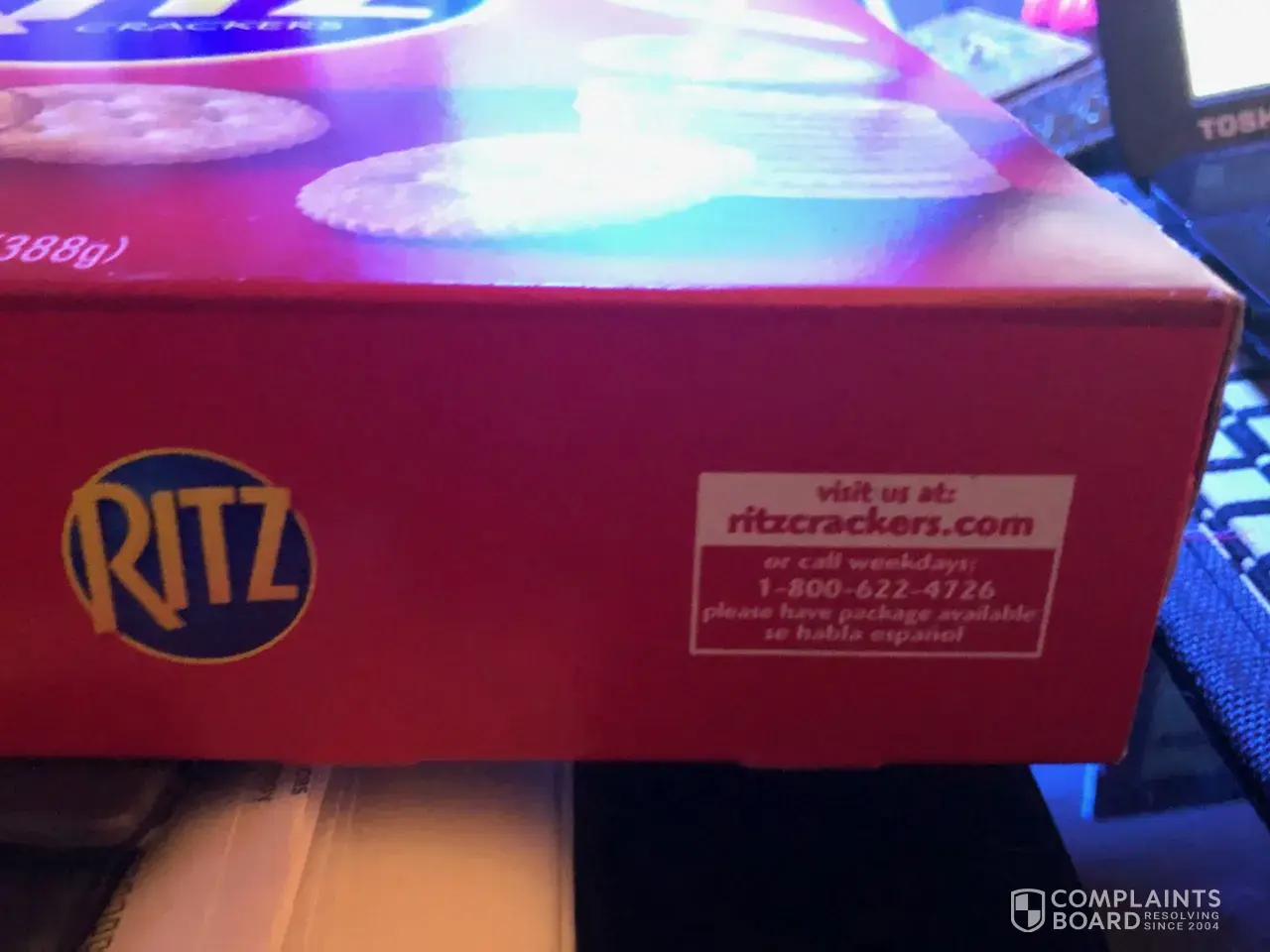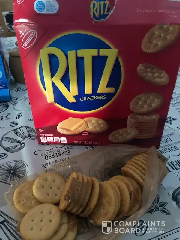 What the hell is in my crackers? In my entire life I never had an issue with ritz crackers but since you mexicans took over you apparently have 0 quality control. We are done buying any Nabisco/Mondalez products. Don't suggest to me that the box or the wrapping was damaged by some outside source either. This is crap and inedible. You can refund me for the entire box of 4 sleeves of crackers