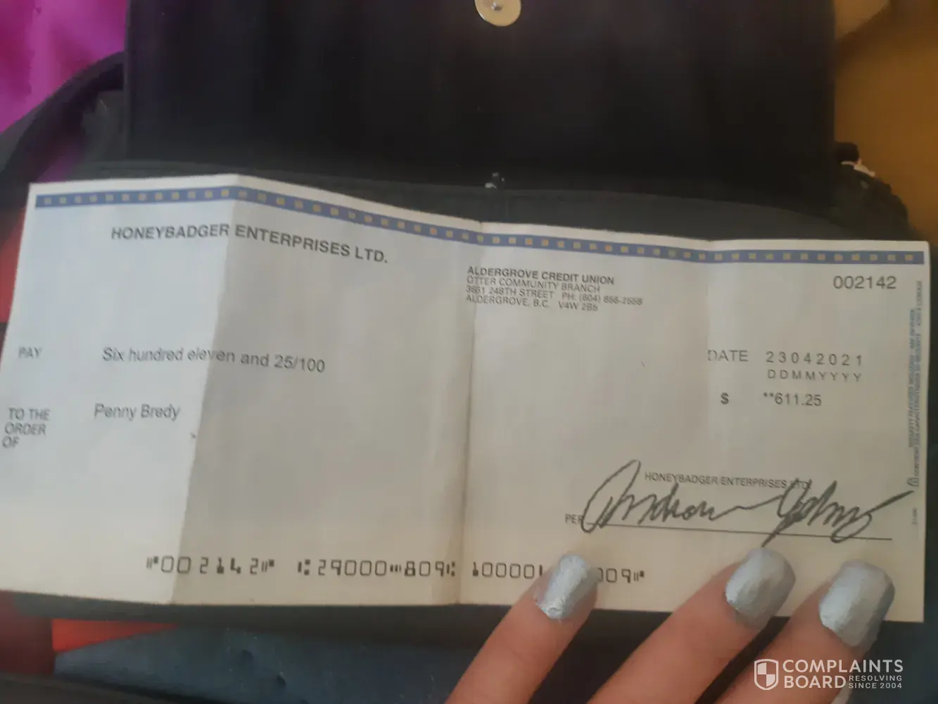 On June 30, 2021 I went into to cash my cheque. The girl only gave me $200 and said etransfer the rest. 1-2 hours. 3 hours later I phoned in, Ashley (manager) said to wait, so I did. At 7 pm, I phoned in again. She said I had to wait until Friday, I asked for my cheque back, she refused. She told me the other store had the money but she wouldn't let me go...