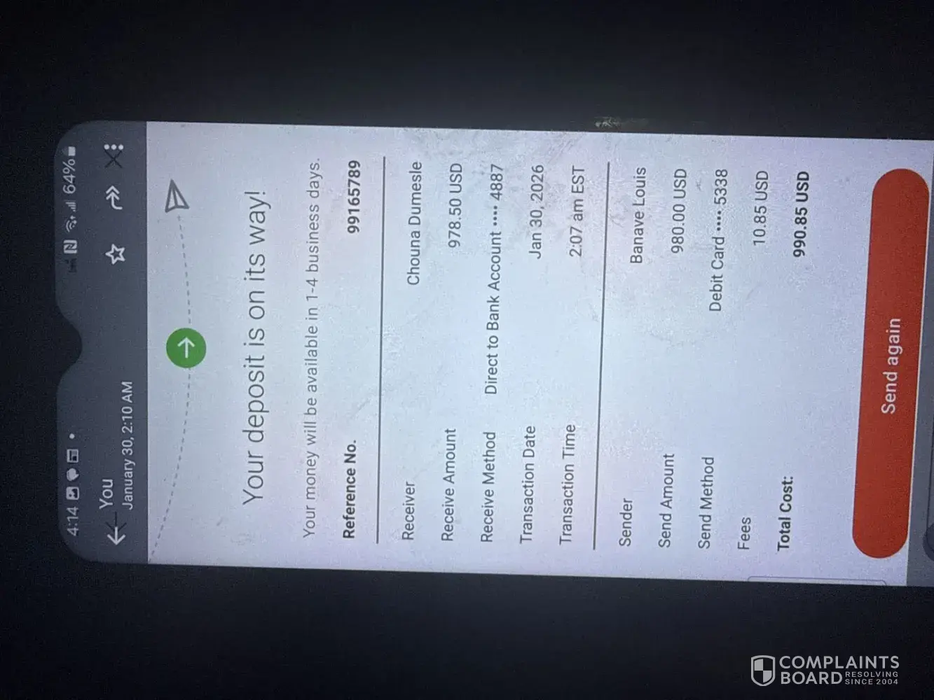 to send money. Wow, they couldn’t even get my 1st transfer right, just imagine if it would have been a larger amount of money.