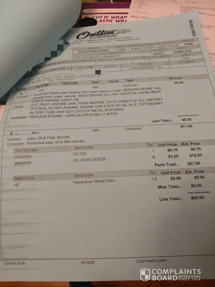 October 4, 2019 I thought I was getting a oil change, after a 1.5-2 hours for a oil change and a tire rotation Ten miles down the road my car starts making all this knocking sound I called Red at monroe about the sound. and so I pulled in to this garage Wes Mathew spoke with a mechanic name Al he says your done 4qts of oil so they order some in the mean...