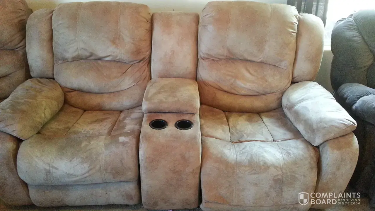 On sofa seat cushions are sinking also on love seat. On foot rest staples came thrue and tear the fabric. The supervisor Javier from visalia ca. From the warehouse give me7 days to reselect. Well I went to reselect but the information wasn't on the system so, I call they supposed to call me back but nothing. So, I decide to go to the store to see was going on. So they did I talk to the manager and he tell me to look and they will do the rest. Finally I found different sofas and went I was ready they call Javier to let him know was going on. Javier talk to me and say. According to get the new sofas I need to clean and get proof of cleaning sofas. so I can get the new ones. But they haven't respond me.