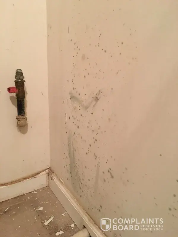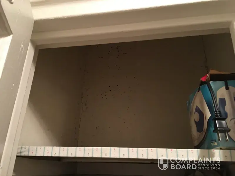 We insisted that they move out the washer/dryer and of course there was a mold outbreak. My husband came back the next day when the workers were there "cleaning" the mold off the walls with a can of cleaner clearly marked "not recommended for cleaning mold". My husband insisted that this was not acceptable...so they ripped out the ceiling and walls in these areas and re-dry walled the same day without letting it dry inside the walls. So, I'm not sure why we were surprised when we saw mold growing again in the closet 3 weeks later on top of the new dry wall.
