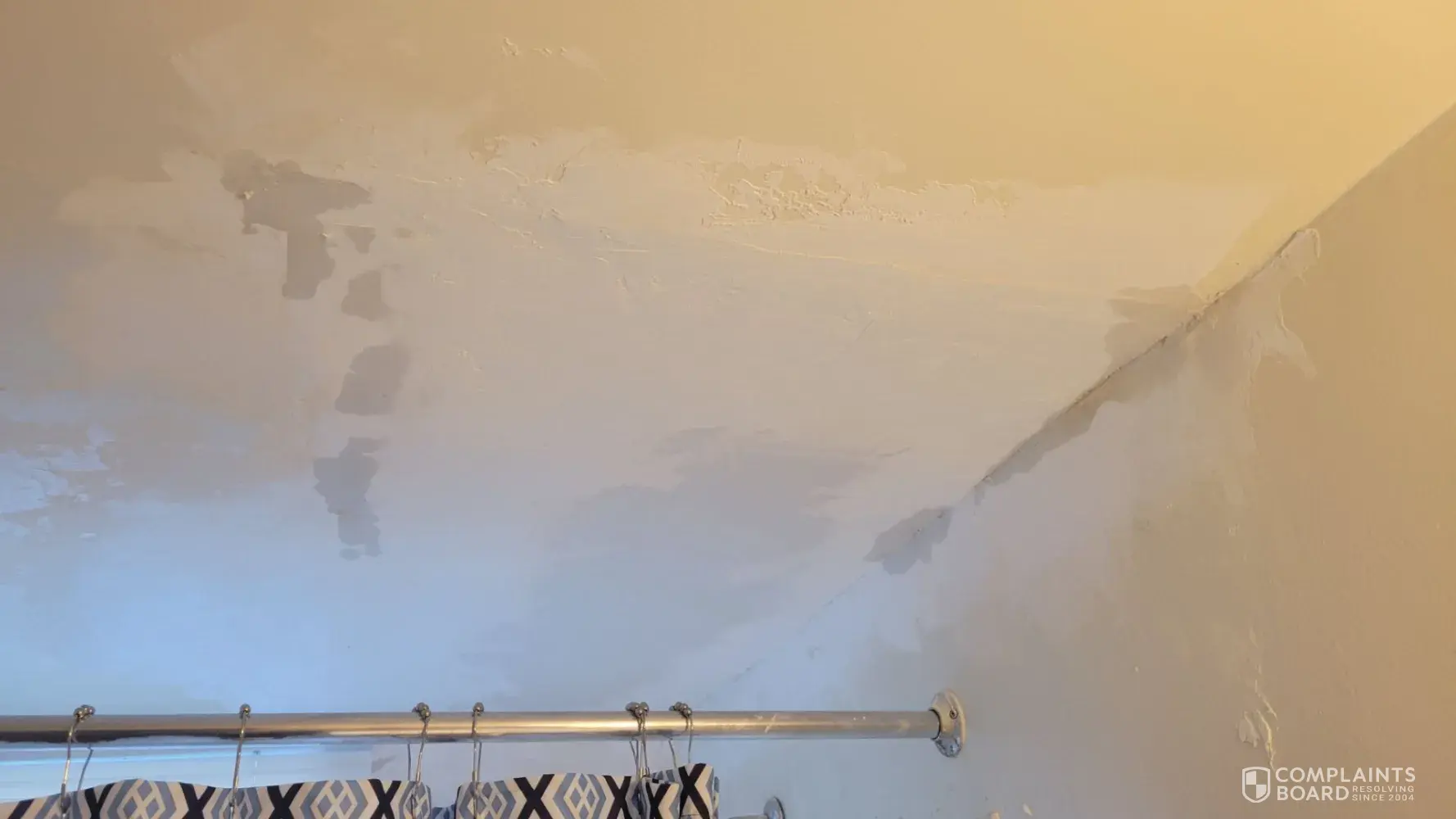 I have a leak in my bathroom over the tub and toilet. Plumber came out put new fittings on the tenants tub above me maintenance man came out to drywall and mud was supposed to be here on wensday to sand and paint but there is an existing leak directly under their toilet . The bathroom smells of heavy urine. I've been disinfecting the bathroom everyday. This is beginning to be redundant and a very concerning matter. Maintenance requests keep saying its completed when it is absolutely not .