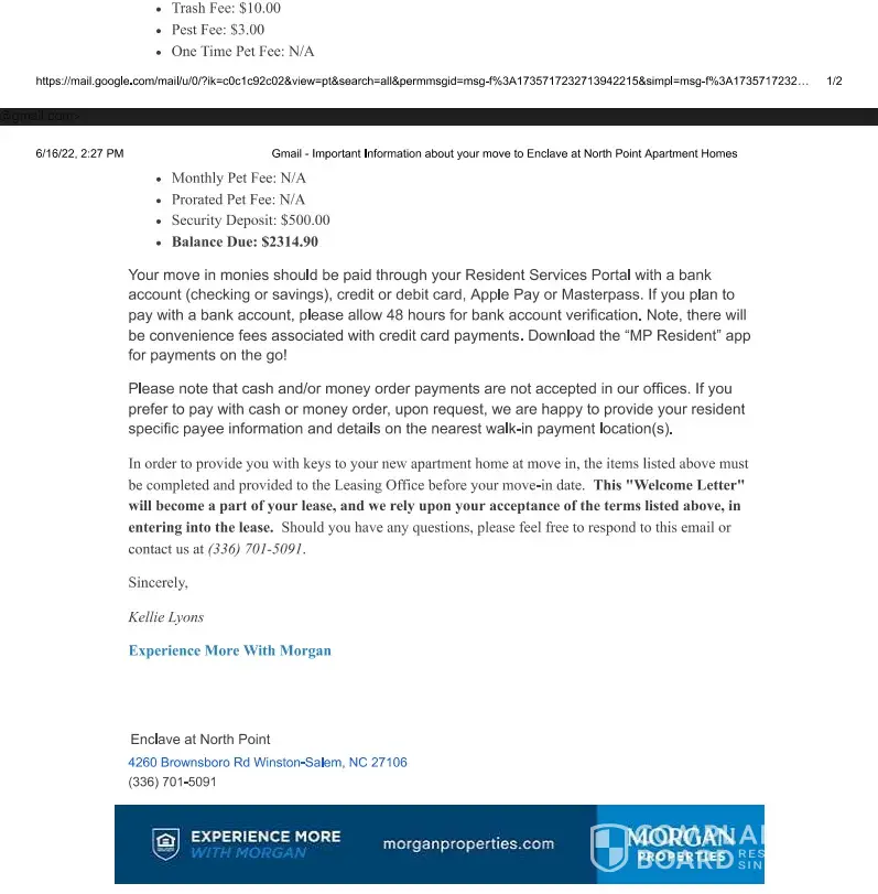I was living in 2 bedrooms apartment at 5460 BRADFORD COURT, ALEXANDRIA, VIRGINIA 22311, one of the Morgan Properties buildings at Lynbrook apartment. I was living upstairs until this year I decided to move to the lower level because my wife was having knee problems. They denied my request that I can only move to a bigger apartment such as a three-bedroom or move to a different organization. My income will not allow me to go for three bedrooms now. I decided to look elsewhere. On April 30th, 2022, I found one two-bedroom apartment at another Morgan Properties called Stoneridge. The address was 5742 Dunster Ct Apt#171 Alexandria VA 22311. I was told that I cannot visit the room because someone was still living in it, but they showed it to me on a computer in their office. My moving-out date was July 28th, 2022, from the Lynbrook apartment but Stoneridge said that their apartment would be ready by August 1st, 2022. They decided to negotiate with Lynbrook for me to stay for three more days and I will pay for that. I paid $50 to hold the apartment on April 30, 2022. I was told that they will let me know the next step to take. I have been visiting them occasionally just for a reminder. I was in the Stoneridge office the last week before July 28th, and I was told that the workers needed more time to finish up the apartment and that my moving date will be shifted from August 1st to August 9th. I have been in touch since then, I was confirmed that I will get the key to my apartment on August 9th. On August 4th I paid $350 for amenity fees and $50 application fees to add my wife to the lease because I was told that August 9th will not change and I need to finish all payments and sign the lease as soon as possible. I requested the whole week off from work in case there is a slight change in the moving I can still cover it. They asked me to wait for August 11 so we will go the see the apartment together before I can get the key. I came in on August 11 as they said, and I was told that they are sorry that the apartment has a lot of work to be done and the apartment cannot be ready by then. They asked me to wait until August 17th to move in. They equally said they will discuss my extension with Lynbrook and that I should not worry about that. I ask to be given another alternative, but they refused that there was no other apartment at the same price and their hands are tights. I found myself hopeless. A few days before August 17th, I got a phone call from Stoneridge saying that to avoid all the back and forth that we will need to shift the moving date to September 1st. All my plans have been changed I did not know what else to say or do, I spoke with my wife, and she suggested that I go back to Lynbrook to ask if it is possible to just renew for another year with them which I did. They accepted and I went to Stoneridge to tell them that since they could not keep to their promises, and they do not have a stable date for me I am going back to renew at Lynbrook, and I will need all my $450 back, and use them to pay Lynbrook. They refused to refund me my money after all they made me go through saying that I was the one backing off. I went there countless times before I was allowed to speak with their supervisor, and she said she will see what she can do I waited for another week to go back there, and I was told they have engaged in the process of returning a part of my money but there was no guarantee that it will be approved or when. I waited for another two weeks to call the call Stoneridge office and I was told that the lady in charge of my case no longer worked there, and they don’t much about my case therefore they cannot help me, that if the lady said I should wait so be it.