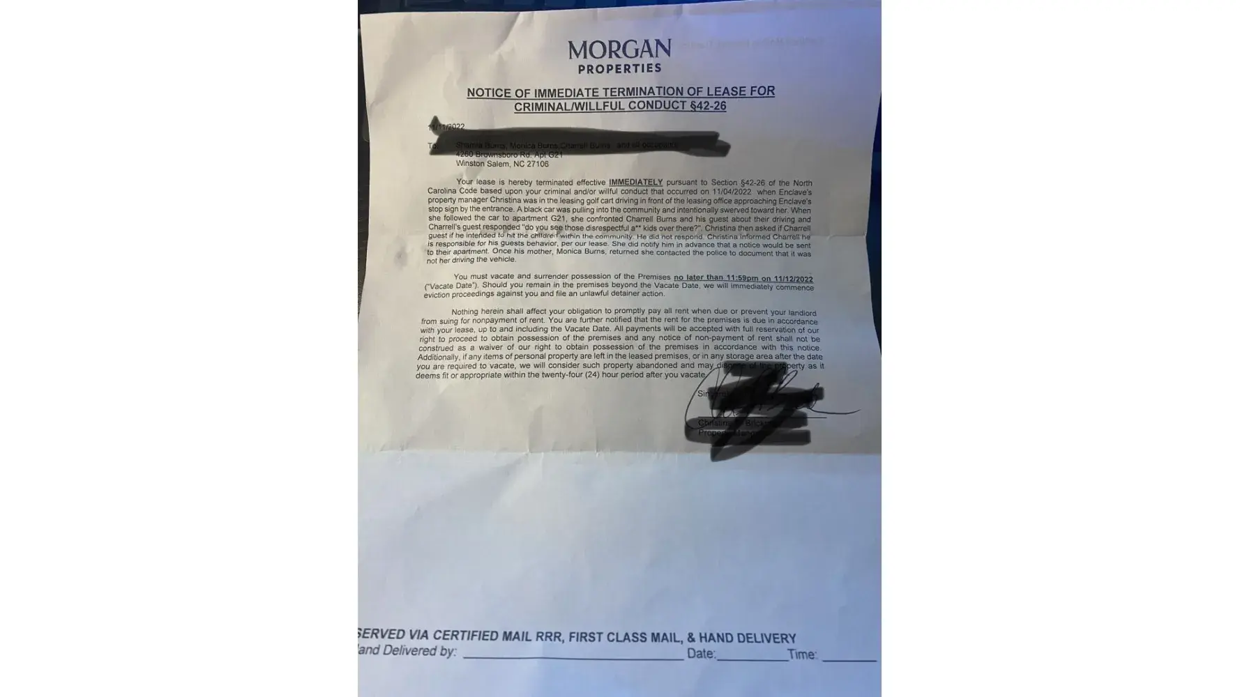 Please because the property manager is trying to evict us tomorrow and this letter is not all that happened