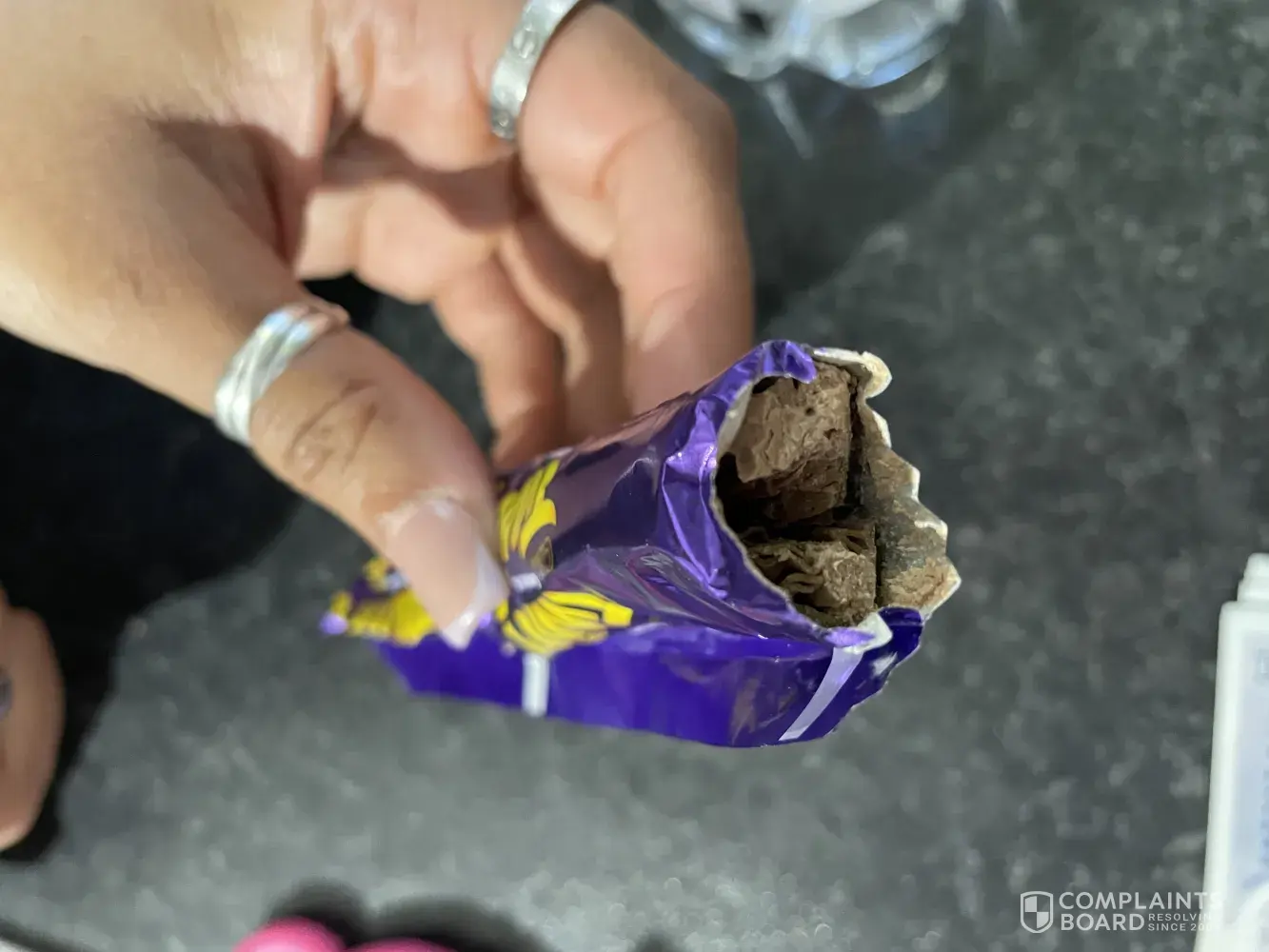 I Bought a box of Cadbury's hero's for my friends birthday today at the Morrison's at five ways In Croydon. I gave them to her today and as she opened the boxed at the top one was already open and stale we emptied the box to check if there was any others to see that there is mold near the sides and rotting at the bottom
