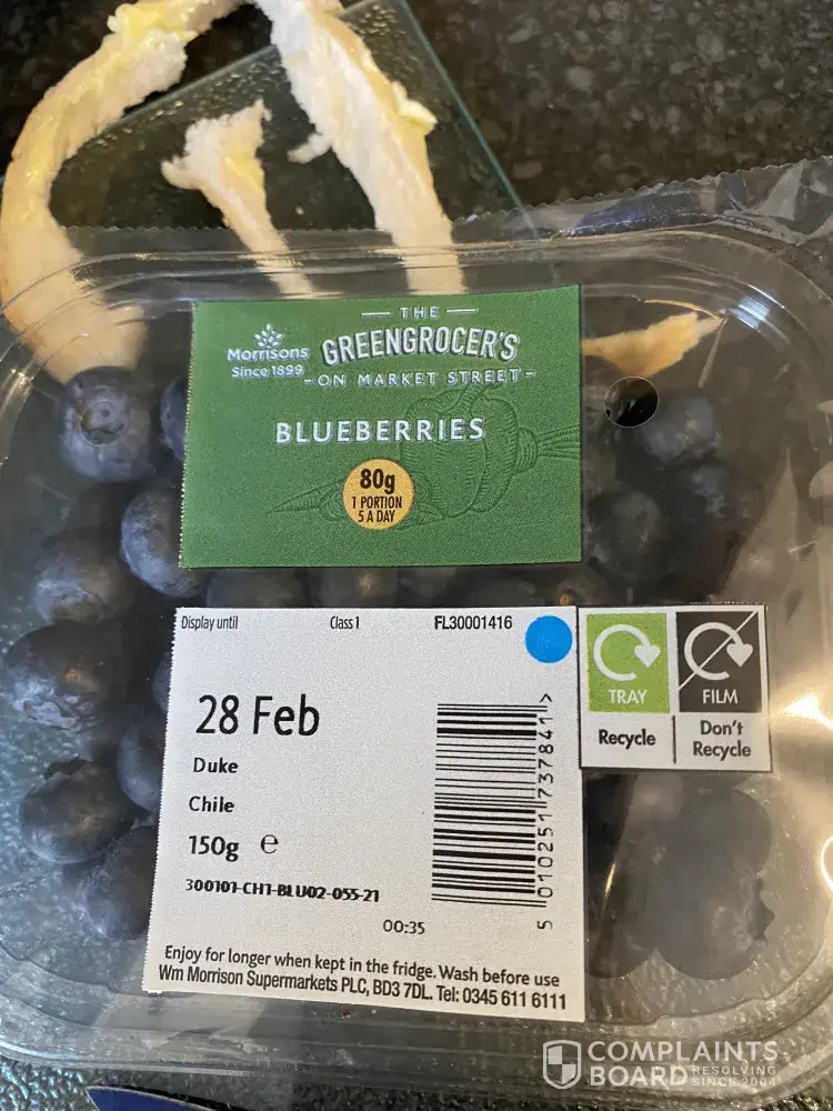 We had a delivery yesterday(which was 45 minutes early once again). My partner had spoken to you about that. Once getting our shopping out, which was all battered and smashed up, we noticed the bananas were all black and soggy so had to be thrown. Ive just gone to do my little boys lunch, and i have noticed that the blueberries i had ordered went out of date on the 28th which was yesterday meaning the day we had our shopping delivered! This is getting a joke now, every week there is something wrong with our order.