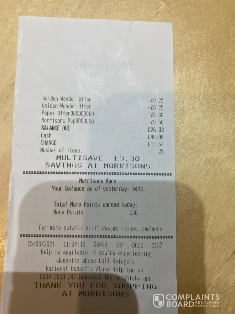 On arrival at Morrison, I did my shopping of 15 products, small buy. With small trolly,