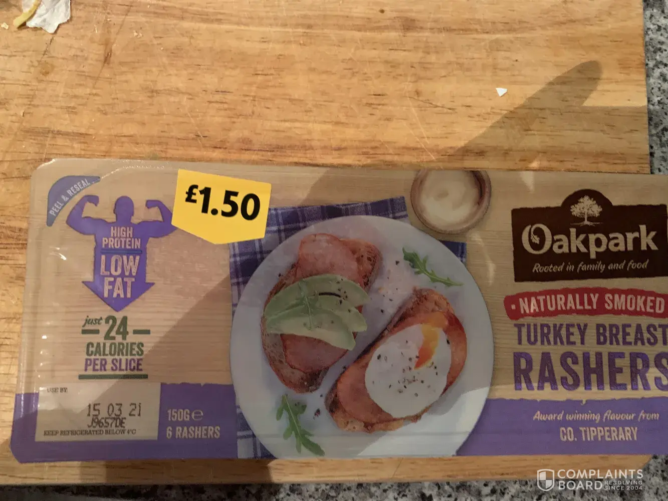 I brought a packet of turkey rashers (photo attached) yesterday from Morrison's Store in Gravesend Kent UK the date now I have checked as about to use the product is 15th March use by date!