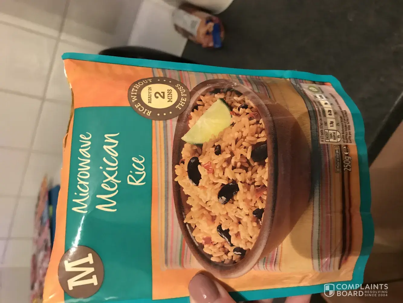 I went into the leyland Morrisons store to do my weekly shop on the 02/11/2017. I bought 3 packets of Morrisons microwave Mexican rice. The date on the packet for when they re out of date was sept 2018. I used a packet when I got home to put with chilli on carne. When I tipped it out of the pack it was full of mould. All over it. It was absolutely disgusting. I also have picture of this.