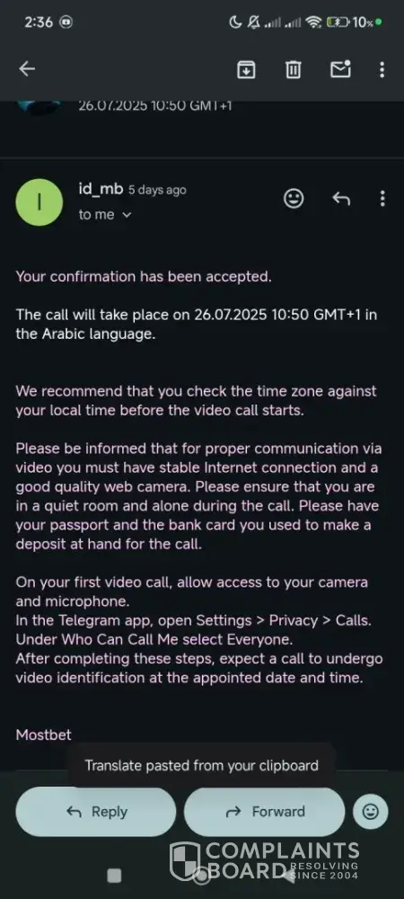 MOSTBET ID 245347140 Hello, This is the second time you scheduled a video call with me but didn’t show up. I have already sent all the documents you asked for. Please unfreeze my account — I have done everything required and waited patiently. I hope you solve this as soon as possible. Thank you. I was waiting again today for the video call, but once...