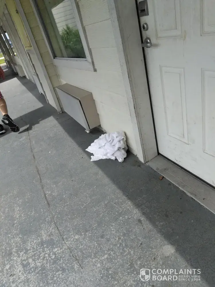 I left for the day and returned back at the room that night. It appeared to be cleaned. I inspected everything and it was a much better improvement. Then I walked over to the door and almost slipped and fell. The FLOOR was still wet! The water was coming up through the floor. The water was bubbling up through the flooring. They knew there was a leak but put me and my two small children in there anyway.