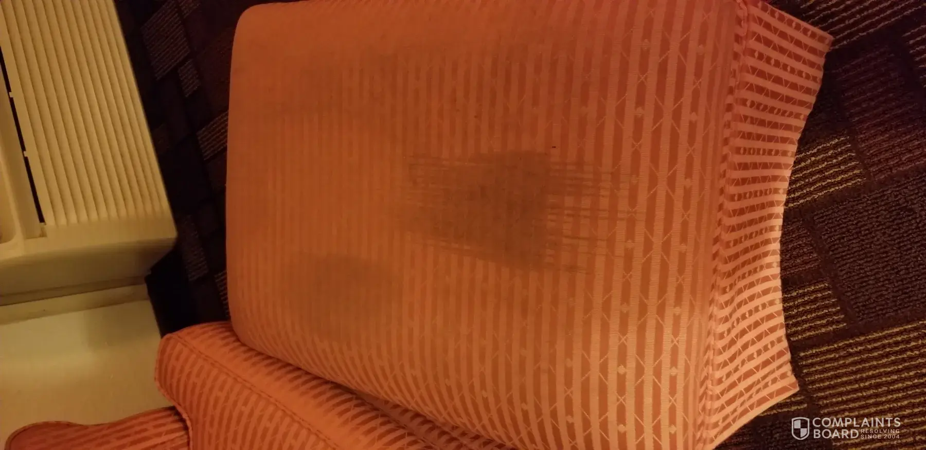 When we got into our room, I noticed a very visible stain on the decorative pillow on one of the beds. I had my husband go to the front desk to ask for any additional pillows. He brought two back, saying that the same front counter person I talked to on the phone didn't know if he had any pillows. Does this motel not have extra supplies? Is this person at the front counter so new, he doesn't know his job? Or does he just have terrible customer service, and not care about his work. The condition of the pillows were questionable, one didn't have a pillow case on it, the second pillow had a stained pillow case on it. Our dogs bed is cleaner than what he offered us! Did he not see the visible stain my husband and I saw?
