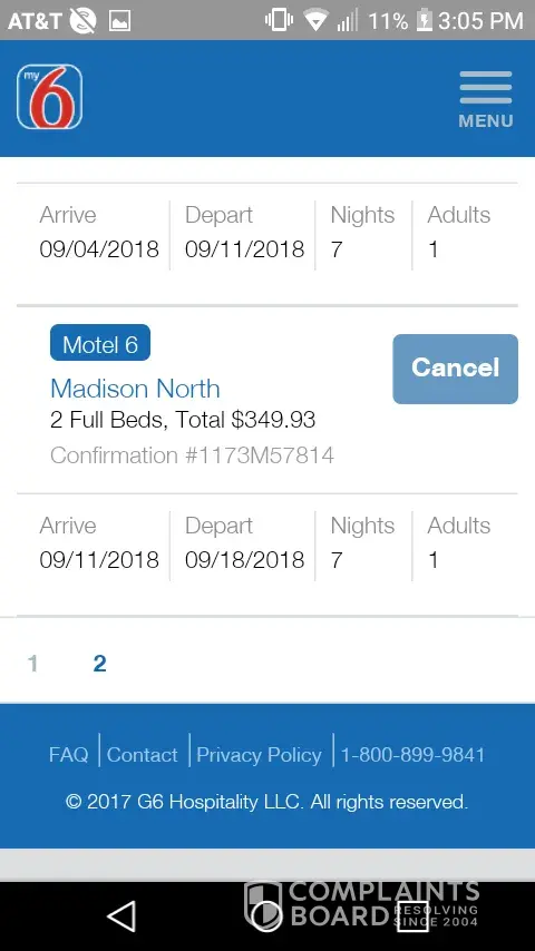 Our Baseball bowling league booked 6 rooms to stay at 4900 Circle 75 Parkway, Atlanta GA 30339on Saturday August 18, 2018 to attend the Atlanta Braves baseball game on Sunday August 19. Our league secretary (Trisha Chumley) booked the rooms through booking.com. She was the first to check in. We arrived about 15 minutes later and our reservation could not be found. We spoke to the desk clerk, the motel manager and then to someone at motel 6. After 2 hours and 10 minutes we found out that the reservation for the other 5 rooms was cancelled by the person registering her. I have never had a problem like this. While waiting in the lobby waiting to find out what was going on, at least 10 other people checking in came back to the desk because their key did not work.