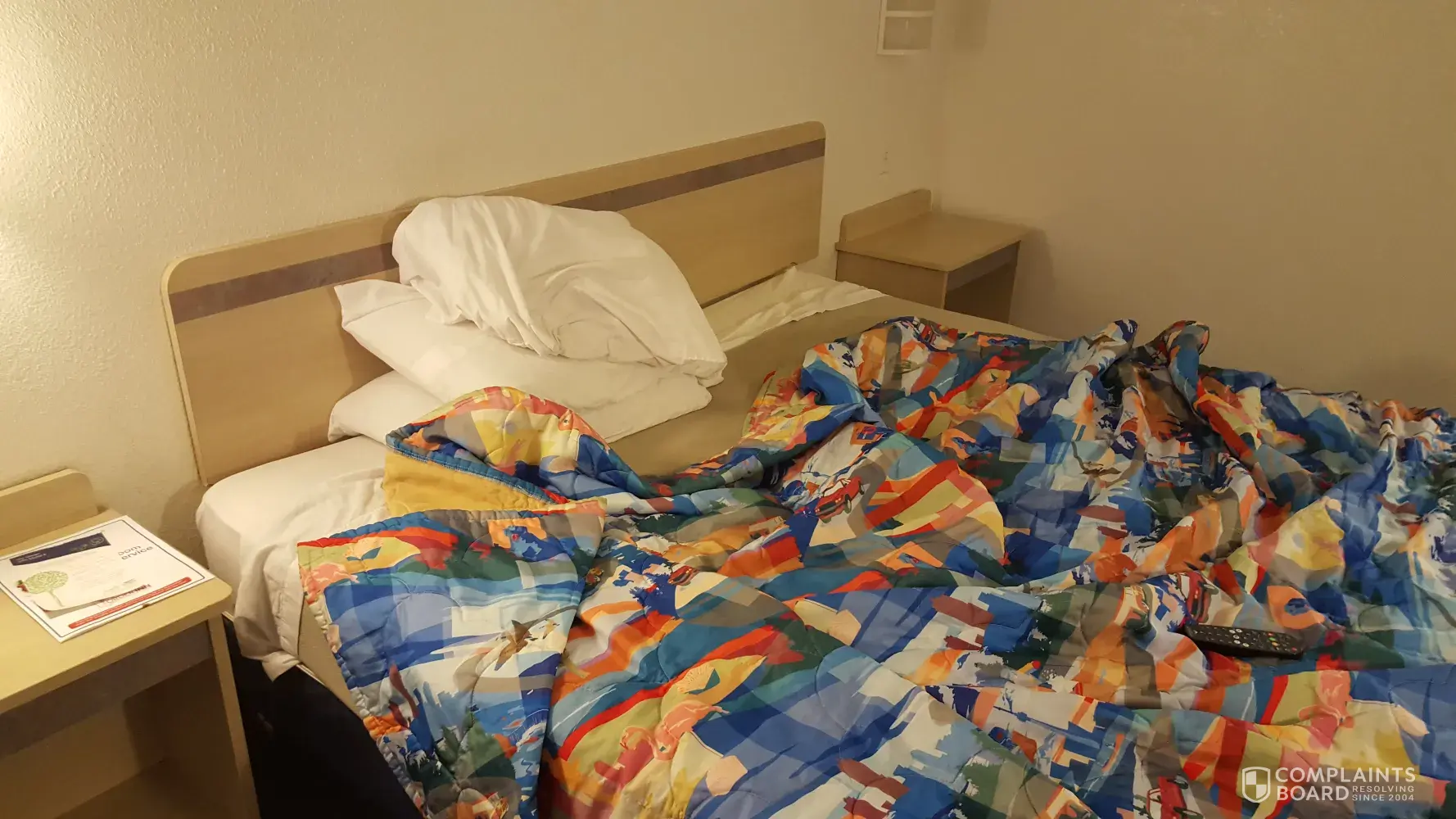 I reserved a room for August 25th at the Motel 6 located on Sunset Boulevard North Canton Ohio. My arrival date was Friday August 25th. I checked in at about 5:00 p.m. When I entered Room 1 1 4 it looked a mess. The AC unit was falling apart, stains on floor, and holes in the ceiling above the sink. I was only staying one night so I thought I could deal with it. But in the morning the shower was dirty. And while getting coffee the office staff was complaining about corporate believing a customer over them concerning bed bugs. Needless to stay say my skin started itching immediately. Hahaha Thank God I slept on top of the comforter! I didn't expect much for $54, what I got was unacceptable. Attached are pictures and video. Someone from corporate should visit the hotel and if they would let their family stay there then let me know. Otherwise I am requesting a refund.