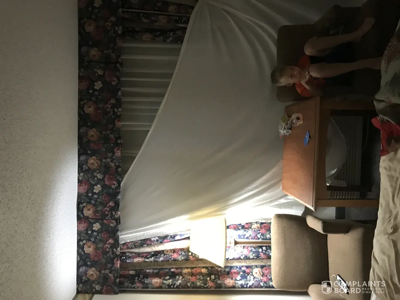 As we were packing our bags upstairs there were roaches running along the stairs(as if it were a NASCAR race.) We get to the room only to find the toilet broken, the phone didn't work(found that out when I picked up the phone to call the front desk to report my toilet was broken), cat pee in the carpets, holes in the curtains, bubblegum on the curtains, HAIR that belonged to someone else in my bed. When I requested a linen change, they brought me the sheets for me to CHANGE MYSELF at 10pm. They promised to move us to another room yesterday 7/1/2017 and it's 7/2/2017 at 12:30pm and we are still in this nasty room.