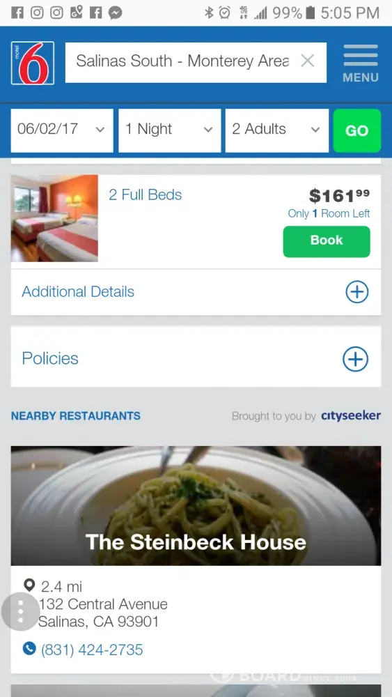On May 26, 2017 I booked a room at the Motel 6 at 6311 Central City Blvd, Galveston, TX., before we went on our cruise.