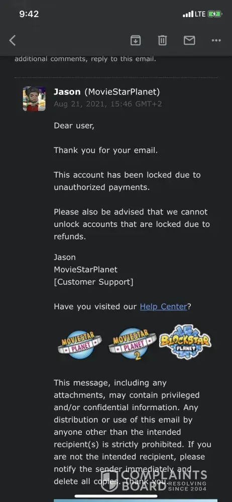 This happened just a few days ago on January the 19th 2024 at around 8pm at night. I accidentally bought a star coin top up by accident not realising what I was doing as I did think I was buying Vip. Upon knowing this I requested a refund through apple pay for only £1.49 so it wasn't even a large sum either, and I assumed they would just revoke my starcoins and diamonds. But instead I got my account locked permanently and a lock number 42. I have emailed them from the 20th and have yet to receive a response from anyone. Not a single person has gotten back to me and so have only received the automated email.