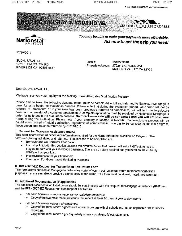 I am sending the letter of eligibility to my lawyer and to local as well as national news agencies. Nationstar's so called homeowner assistance to avoid foreclosure is a lie they tell themselves to help them sleep at night I guess. I am tired of sleepless nights. My $1029.32 plus utilities, plus hoa dues will no longer be paid - I can cancel the utilities, but the hoa will now place a lien on the house... And if it forecloses, well I suppose nationstar will have to fight that battle.