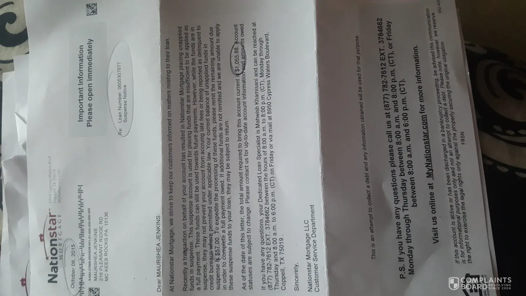 Feel free to contact me if you like. - don't worry, i'm not a weirdo and I'm not selling anything. I'm just sick of Nationstar's crap and I need more support to fight them.