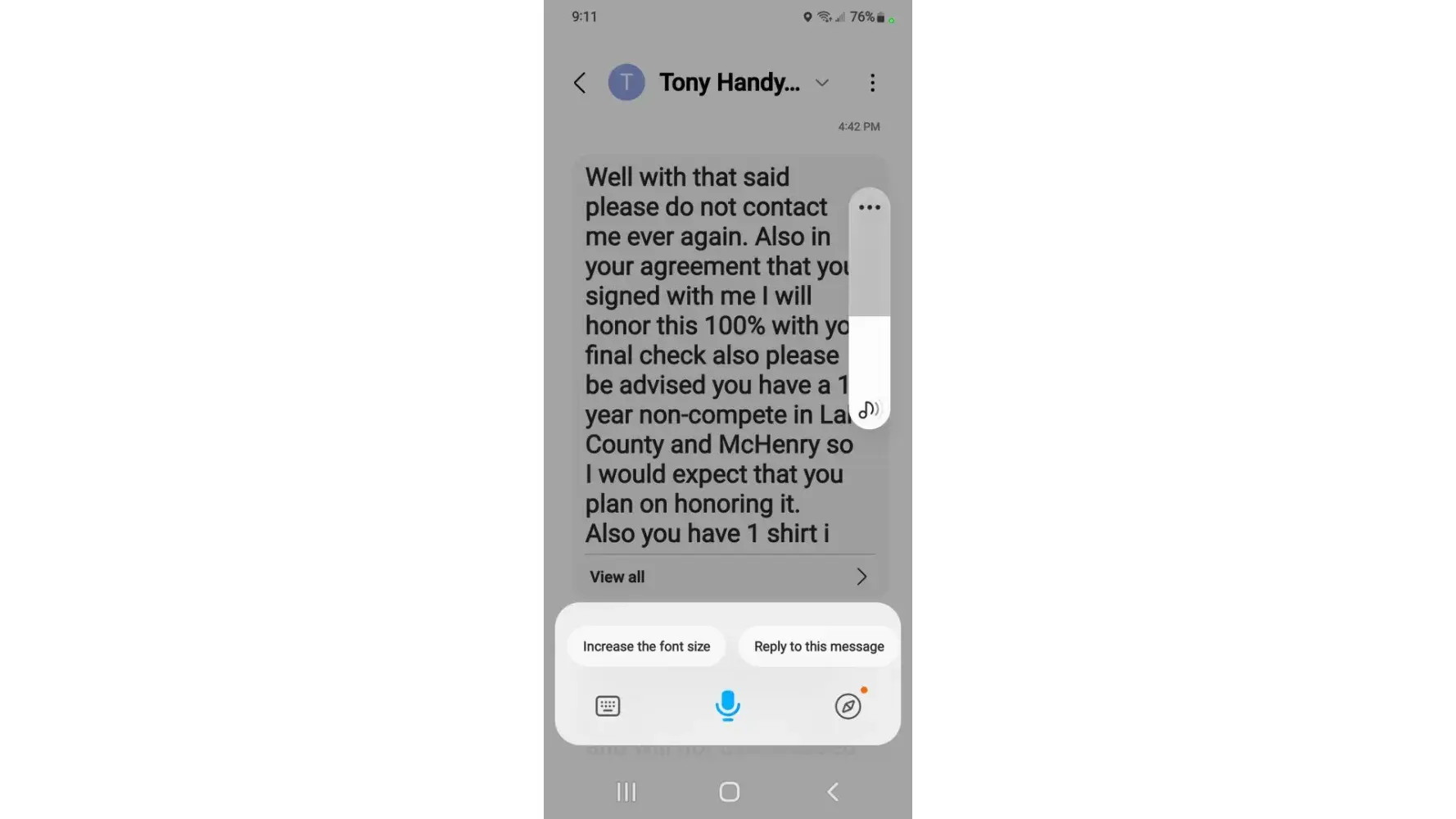 The day I quit I was going to work for Mr Handyman of Glenview and not only has he threatened me through a text not to see him or employees face to face if I know what's good for me.