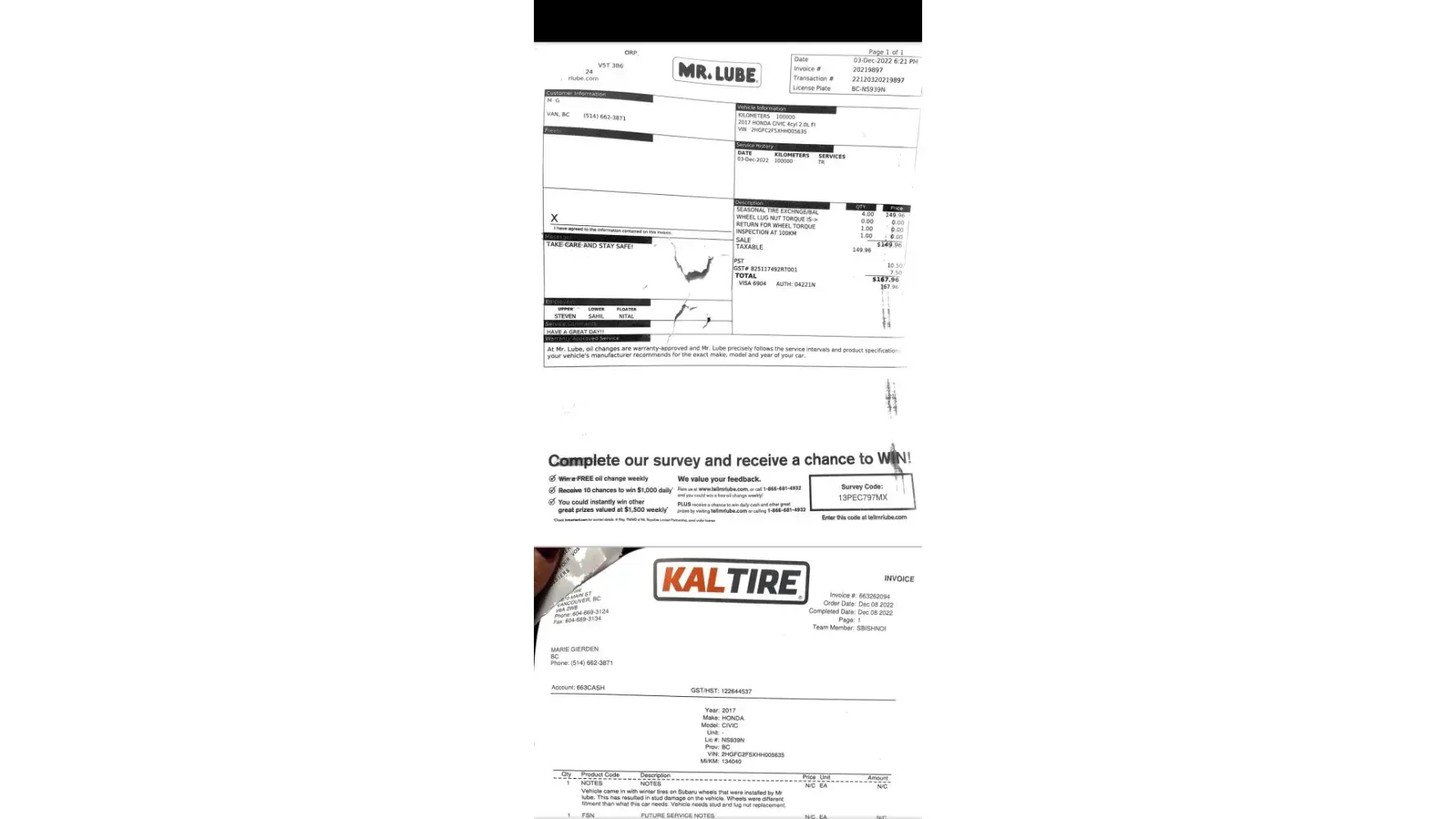 What a service Mr Lube has become. The address of Mr Lube I went to was “793 Spadina Rd, Toronto, ONâ€