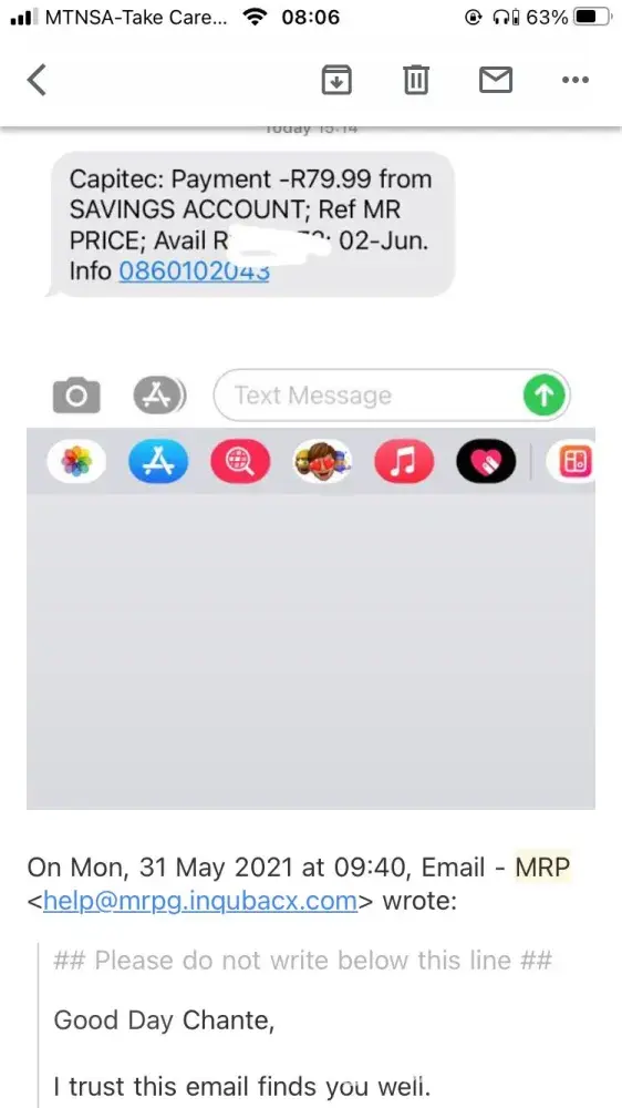 On 8 July 2021 I applied for a loan at a commercial bank and was informed that I do not qualify for the loan due to a bad payment history. On further inquiry, it a came to light that it is because of the Mr Price Mobile fiasco.