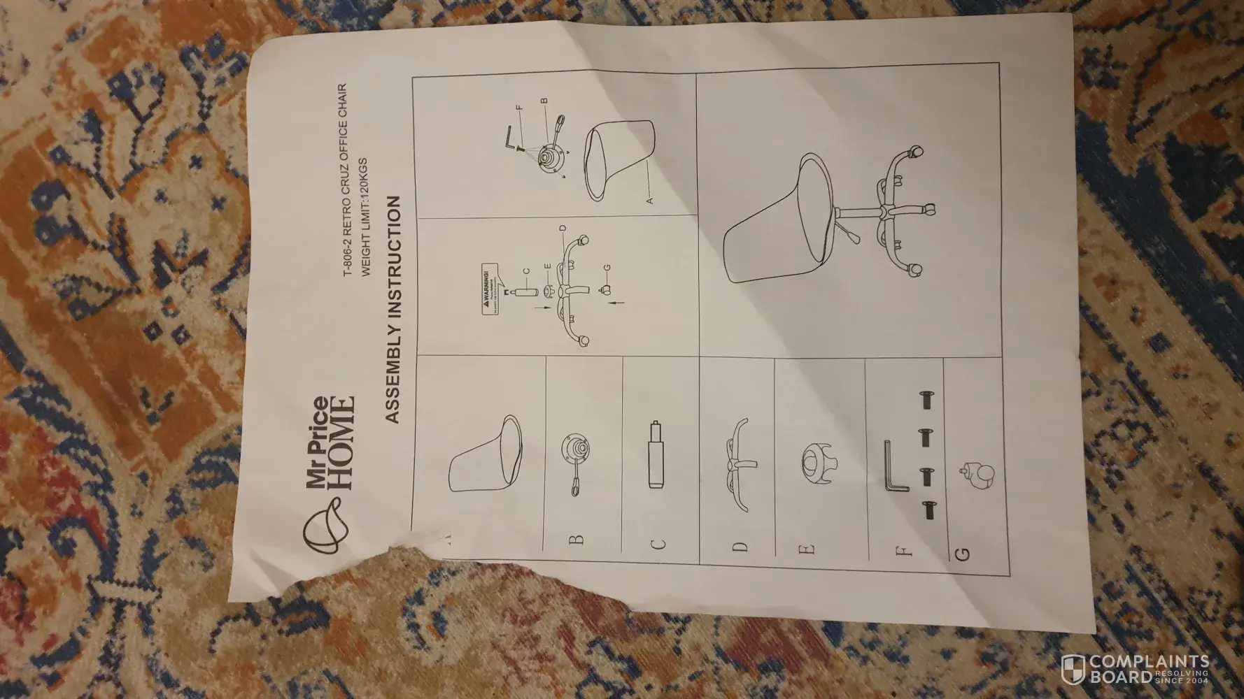 The Black Retro Cruz Office chair is missing the base that screws into the seat of the chair (labelled part B on the instructions). I have circled this on the instructions.