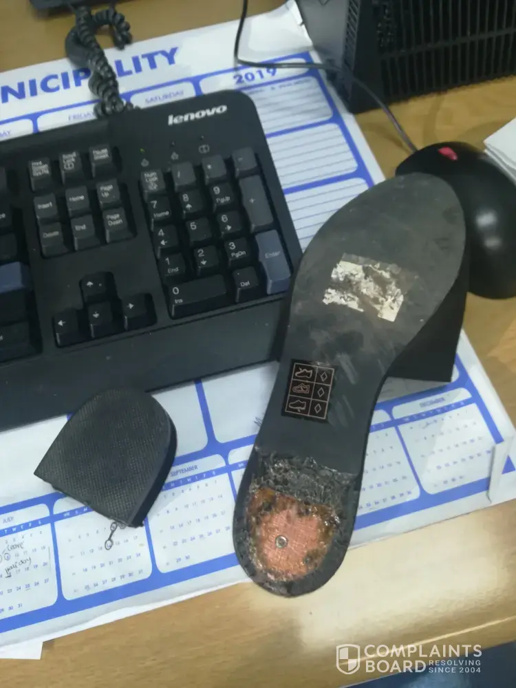 I bought the attached pair of shoes (Black Slip on Mule) yesterday 25/07/19 at MR PRICE MUSGRAVE, today 26/07/19 the sole is out, it not like I've been walking on an uneven surface or climbing steps. The sole came out in the office, now I look like a mad woman in the office. I am very disappointed at the quality of this pair of shoe.