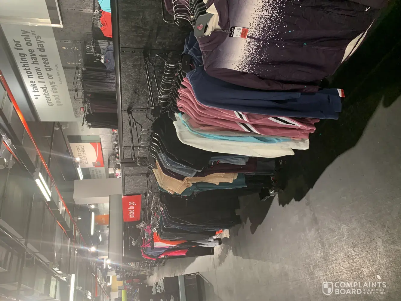 I purchased a substantial amount of goods from the store - sneakers, sporting gear and clothing apparel.