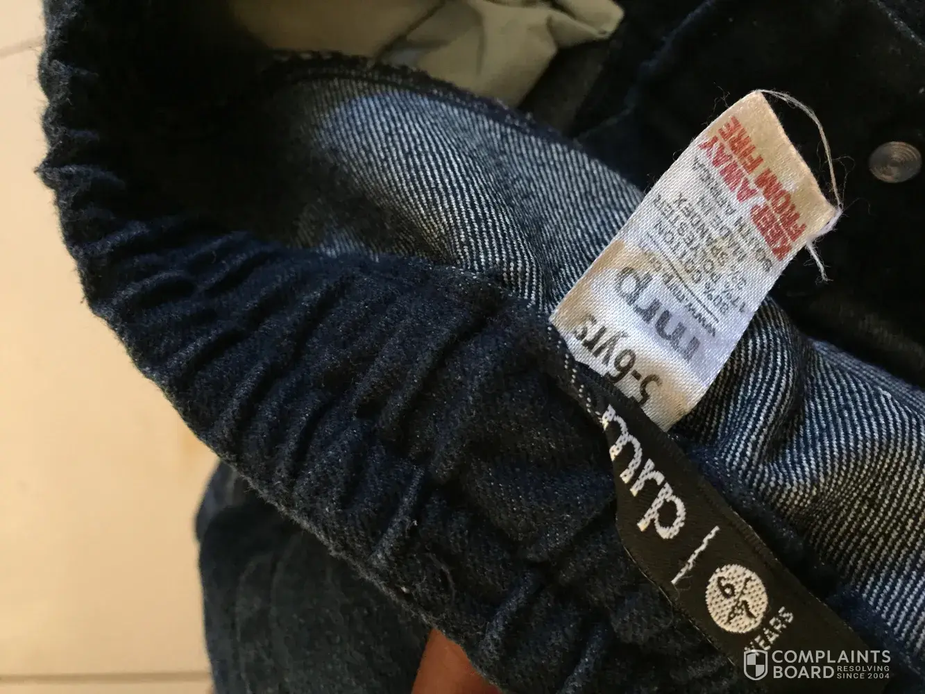 I bought my nephew a skinny jean on the tag it said 6/7 years ohk thats the perfect size for him. He went to go visit his grandmother. When he came back I noticed the jean was way too tight and short since he left home without wearing it. When i looked closer on the white label under the black one it had 5/6 years instead of 6/7. I am so disappointed since most of the time i have to buy clothes for my family without them being present and depending on the the sizes on the clothes.