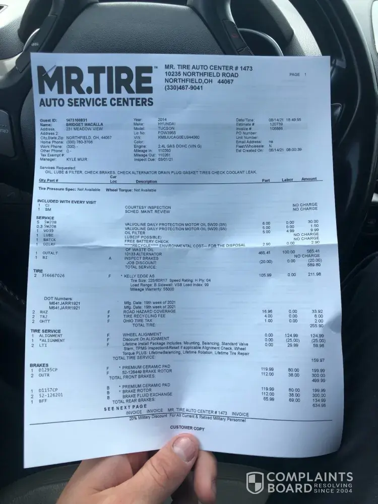 Read full complaintAbout Mr. Tire