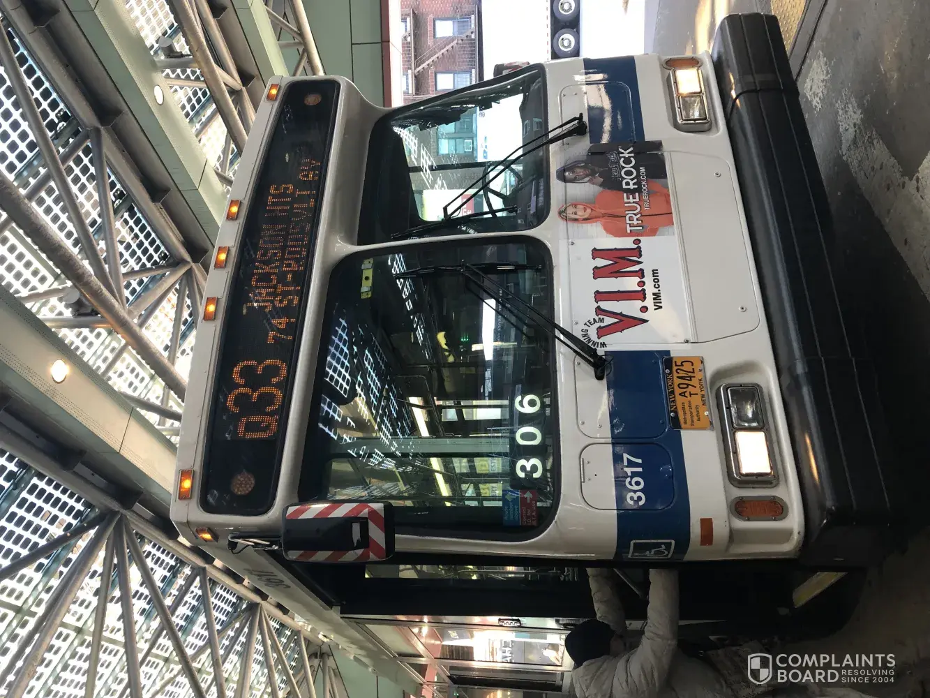 Read full complaintrude bus driver q33 route, bus number 306 (3617) plate at 9424