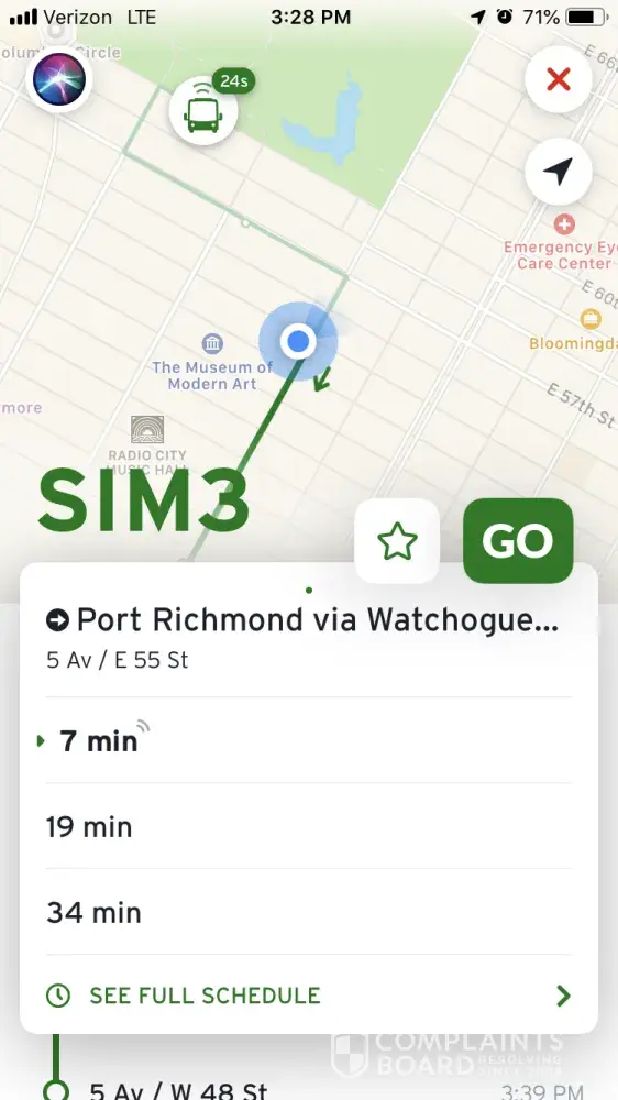 stop in time to catch my bus (SIM3). Well boy was I in for a rude awakening when it didn't come for the next 50 mins. In the interim, 5 SIM8s passed by (I guess it was a slow day considering the 8s pass by every 5 mins an hour). Everyone waiting at my stop for the SIM8 was serviced for each stop, yet I stayed standing at the stop, braving the rain, wind, and cold, while I waited for my bus. I checked my app to start. It said it was 8 mins away at 3:09 and the next was 23 mins away. That's a large time gap if you ask me, but I didn't mind knowing I'd be on the bus at 3:17. This was very accurate to the time that was listed on the stop's timetable itself that said the bus should arrive at 3:18. So I waited knowing my bus should be arriving shortly. At 3:14, I check again. The bus said it was 3 mins away which was right on track with the initial time that was stated. However, at 3:15 I begin to get skeptical of the bus coming so I checked another app to see that there was not A SINGLE BUS COMING ON THE MAP. Already distressed due to the disappointment and lack of punctuality the MTA constantly displays, I waited for the second bus (that the app said was on its way) to arrive. At 3:22 my app said it was only 10 mins away. This also would have been correct with the times displayed at each stop since my stop showed the second SIM3 should be by me at 3:33. Now entirely wet from the rain and shivering from the cold wind, I check my other app at 3:26 to see where the bus is on the map. And YET AGAIN, there was NOT ONE SINGLE BUS ON THE MAP. I go back to my transit app to see if any of the times updated and soon realized that in fact, none of them were updated AT ALL. It said that the SIM3 was still 7 mins away. Now at this point, I am filled with rage. Not only did I leave work early to catch an early bus home, but I was depending on that bus to be there. I had a very early flight that I had to make and when you are depending on transportation to get you one place to another, you'd expect the service to be accurate and accountable. Well, the MTA, specifically with its SI routes and services, has displayed absolutely nothing but poor timing, lack of care for its customers, and untruthful timetables. So as I CONTINUE TO WAIT FOR 38 MINUTES FOR A SIM3 TO ARRIVE, I check my app to see that not 1, but 2 buses BACK TO BACK will arrive at the stop in 3 mins. Well 3 mins later can you guess what happened?! My bus DIDN'T SHOW UP! What a surprise! WOW! At 3:44, two buses were shown to be 0 mins away and do you think that they were? OF COURSE NOT. At 3:48 my bus FINALLY arrived and not only did I have to flag him down as he drove past us, but I had to run into the middle of the street in order to get on the bus. So all in all, I'd say my experience taking the bus today has been just nothing short of predictable and everything from disappointing to unacceptable. At this point I'd like to ask you, what does it take in order to be serviced by the SI Express Bus? Must one live on the South Shore in order to feel like a valued customer? It's evident that everyone from the South Shore is being serviced and their routes are being changed and people are having buses come often, but what does that leave for the rest of the ENTIRE ISLAND? Are we not valued enough? Do we not live far enough? Is our commute back and forth every day for 2 hours day and night making it 10 hours a week commuting not hard enough already? Are you trying to make it harder? I'm so curious to see what the MTA thinks. Because it's clear, especially now, that they most certainly don't think at all. Are buses being cut for no reason? Are drivers taking longer breaks because they do not want to pick up passengers? I refuse to accept the excuse that the buses are late because of inclement weather because truth be told, in rain or shine, the SIM8s arrive all the time. And so does every other bus BUT THE SIM3. Changes must be made. Management must be changed. Customers will no longer ride if they have to wait for 1 hour!