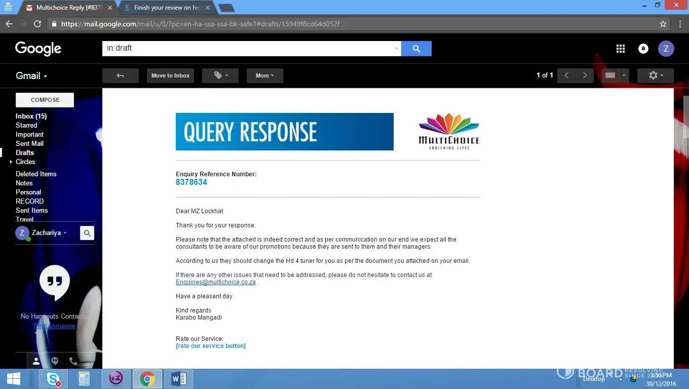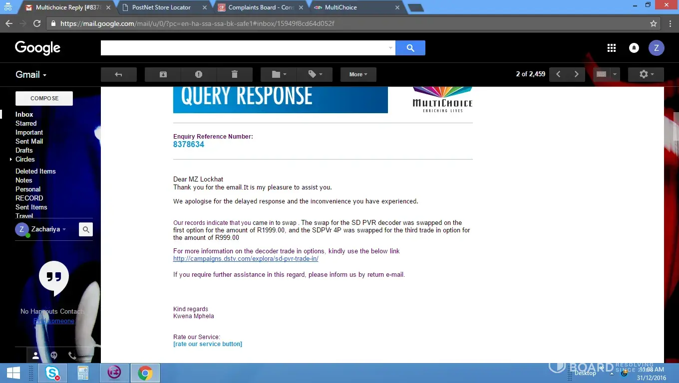 My slips for payment are also attached as well as the idiotic response sent from Kwena Mphela showing the incompetence or rather scams that DSTV are up to. Accoriding to their system I took a whole different trade in package!